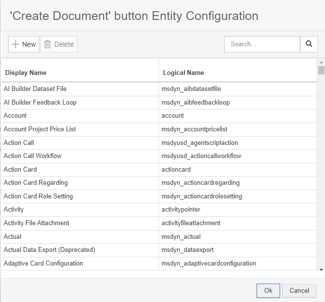 - Dialog Settings: “Create Document”-button Entity Configuration;