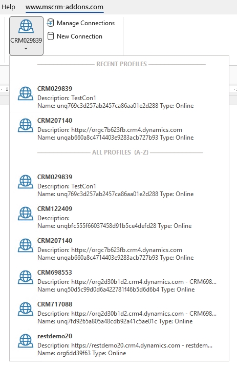 - If you click the lower area (coloured orange) a drop-down list with connection profiles is shown. The most recent profiles are displayed first, followed by all profiles. (MF)