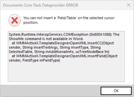 - When trying to insert a field, a “ShowMe command is not available in Word” message could occur. This has now been fixed. (MB)