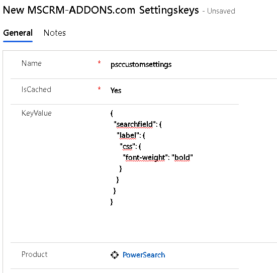 - New settings key “psccustomsettings”: This settings key can be used to change the style of the search field labels within PowerSearch. It is not available via the web configuration and needs to be added manually. To make the search field labels bold, add the following: